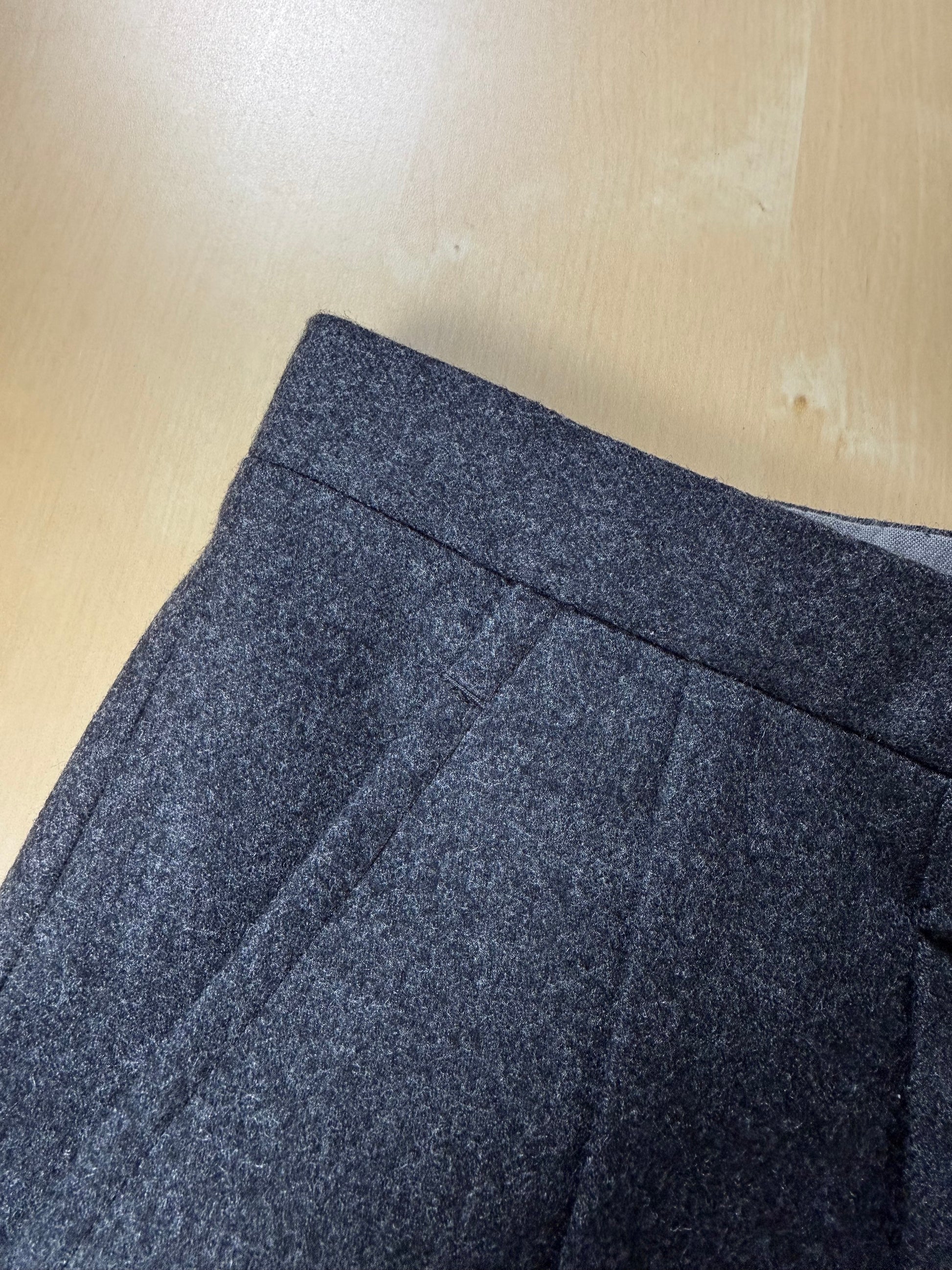 Meravigliosi pantaloni di confezione sartoriale vintage anni '70/'80, in una pesante flanella 100% lana colore grigio medio.