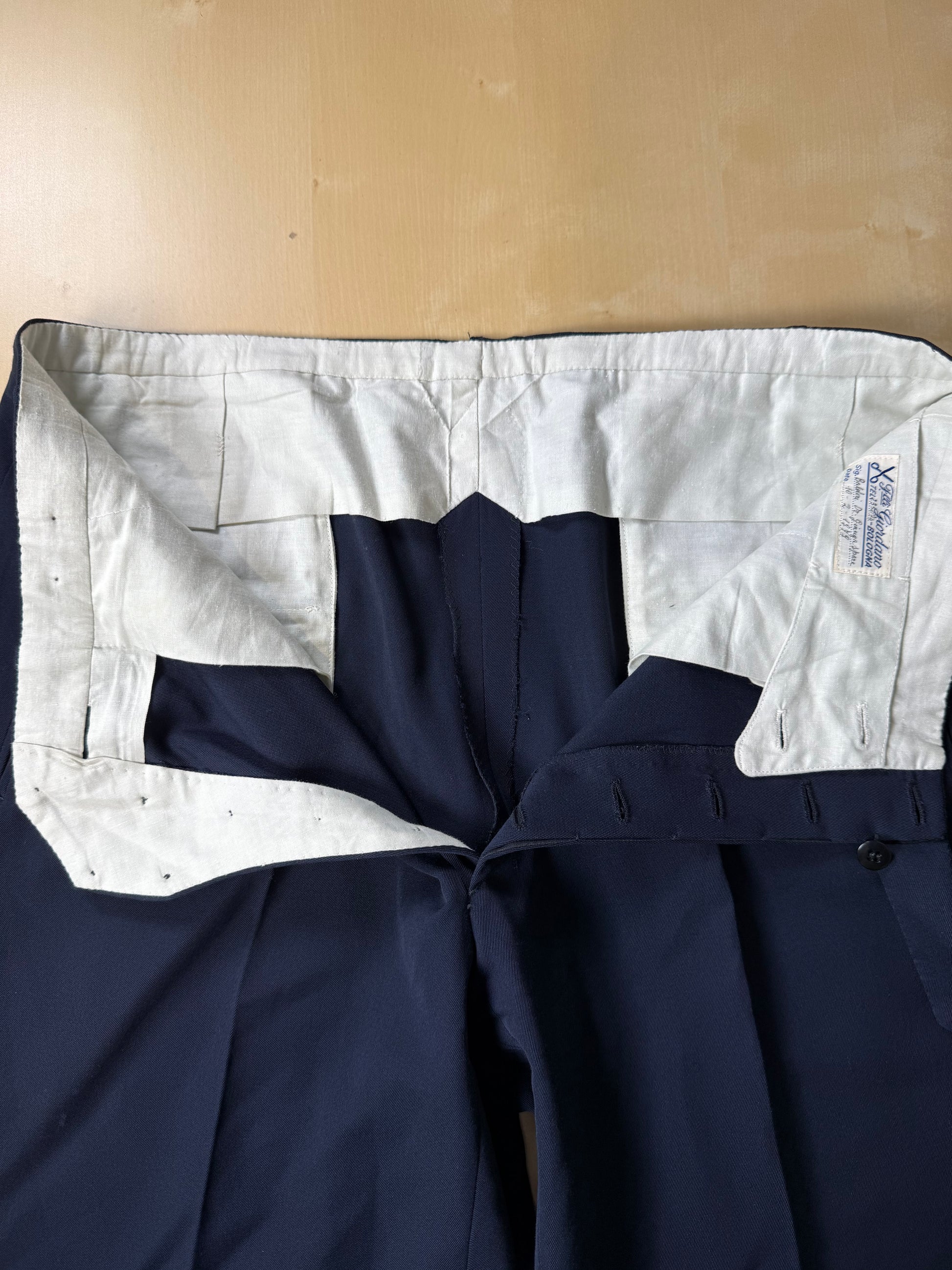 Bellissimi e sobri pantaloni sartoriali da spezzato, anno 1979, da sartoria F.lli Giordano di Bologna.