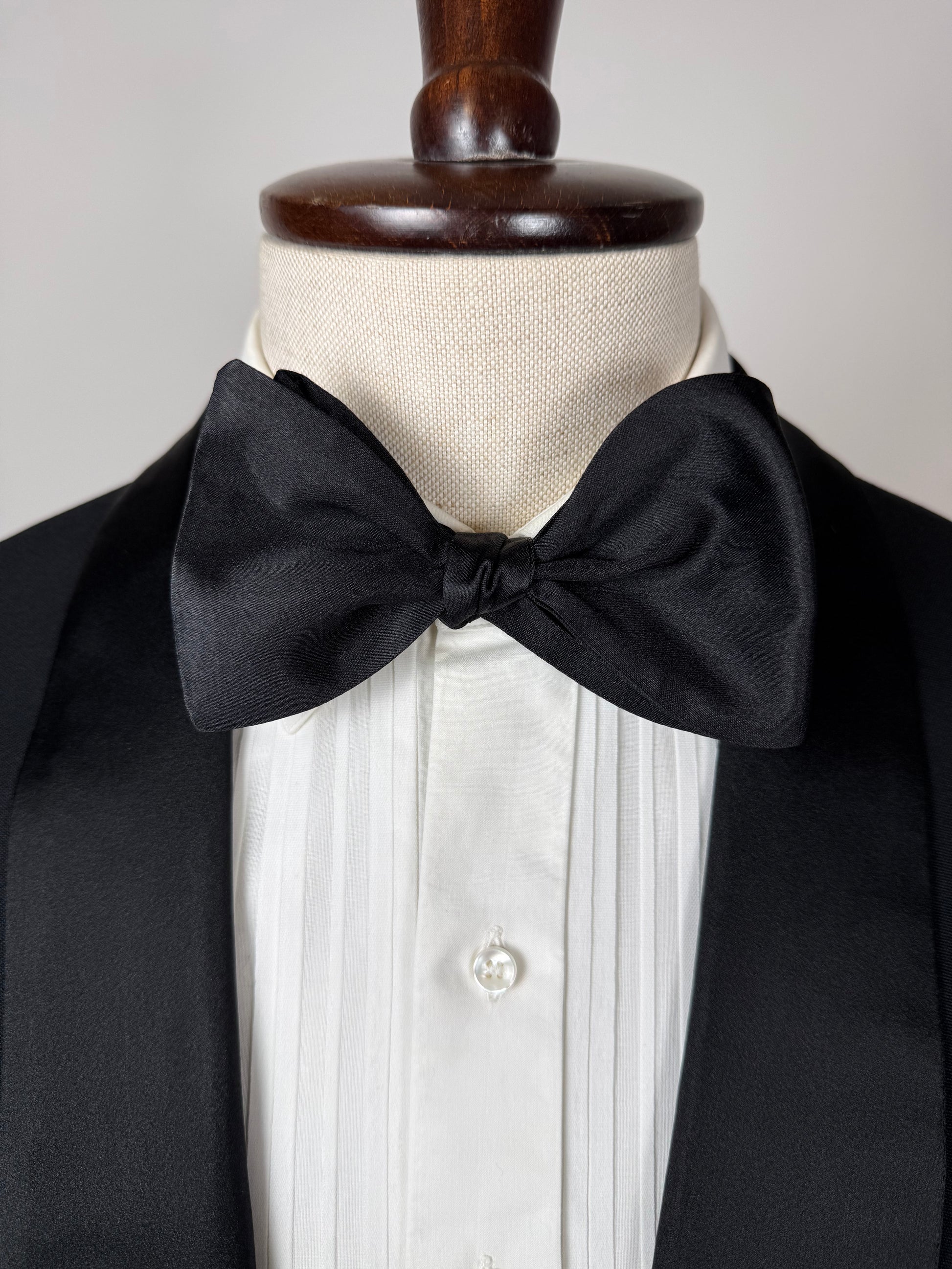 La forma di papillon da sera più classica e versatile, perfetta con i revers a scialle ma anche sul doppiopetto.