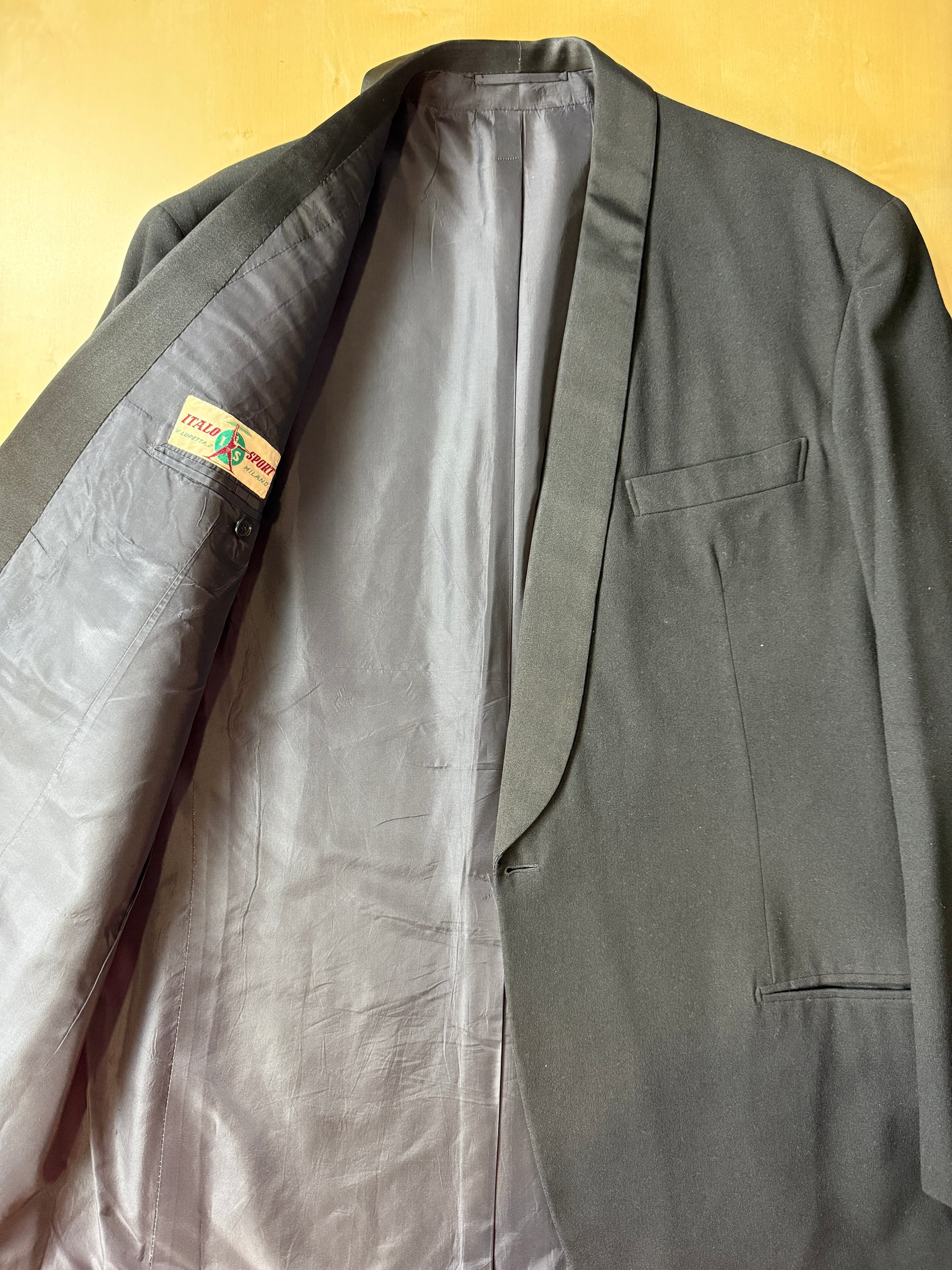 Smoking degli anni anni '50/'60, confezione dello storico negozio Italo Sport di Milano: istituzione meneghina dell'abbigliamento sportivo da sci fin dagli anni '30, dal secondo dopoguerra specializzato anche in confezioni sartoriali classiche.