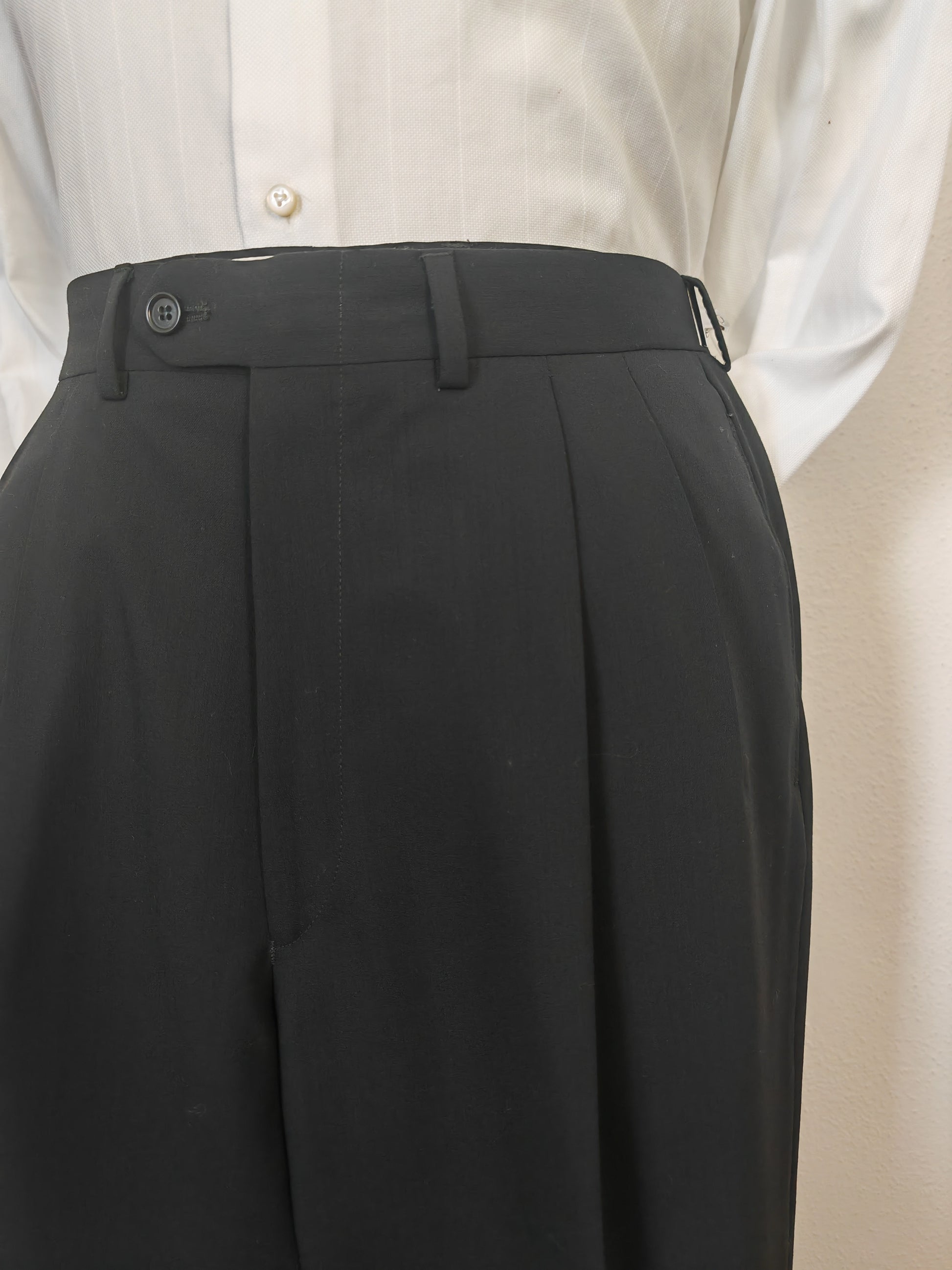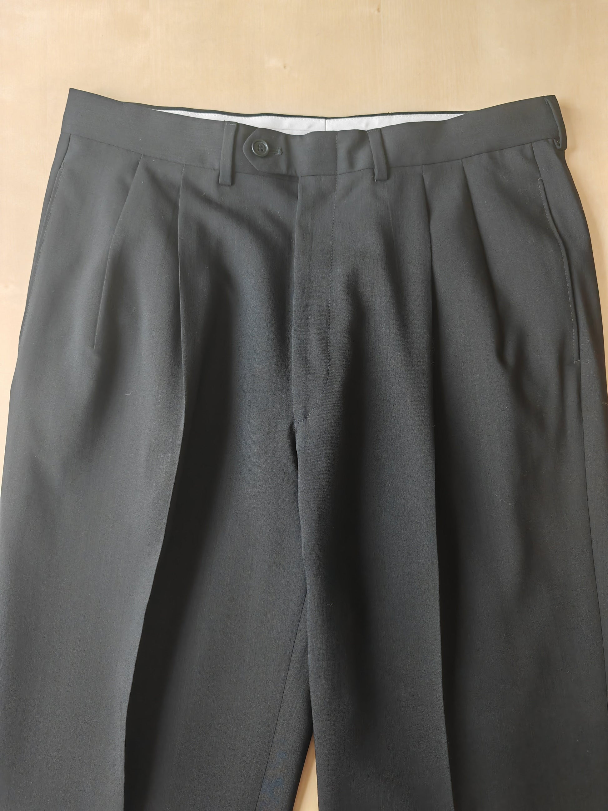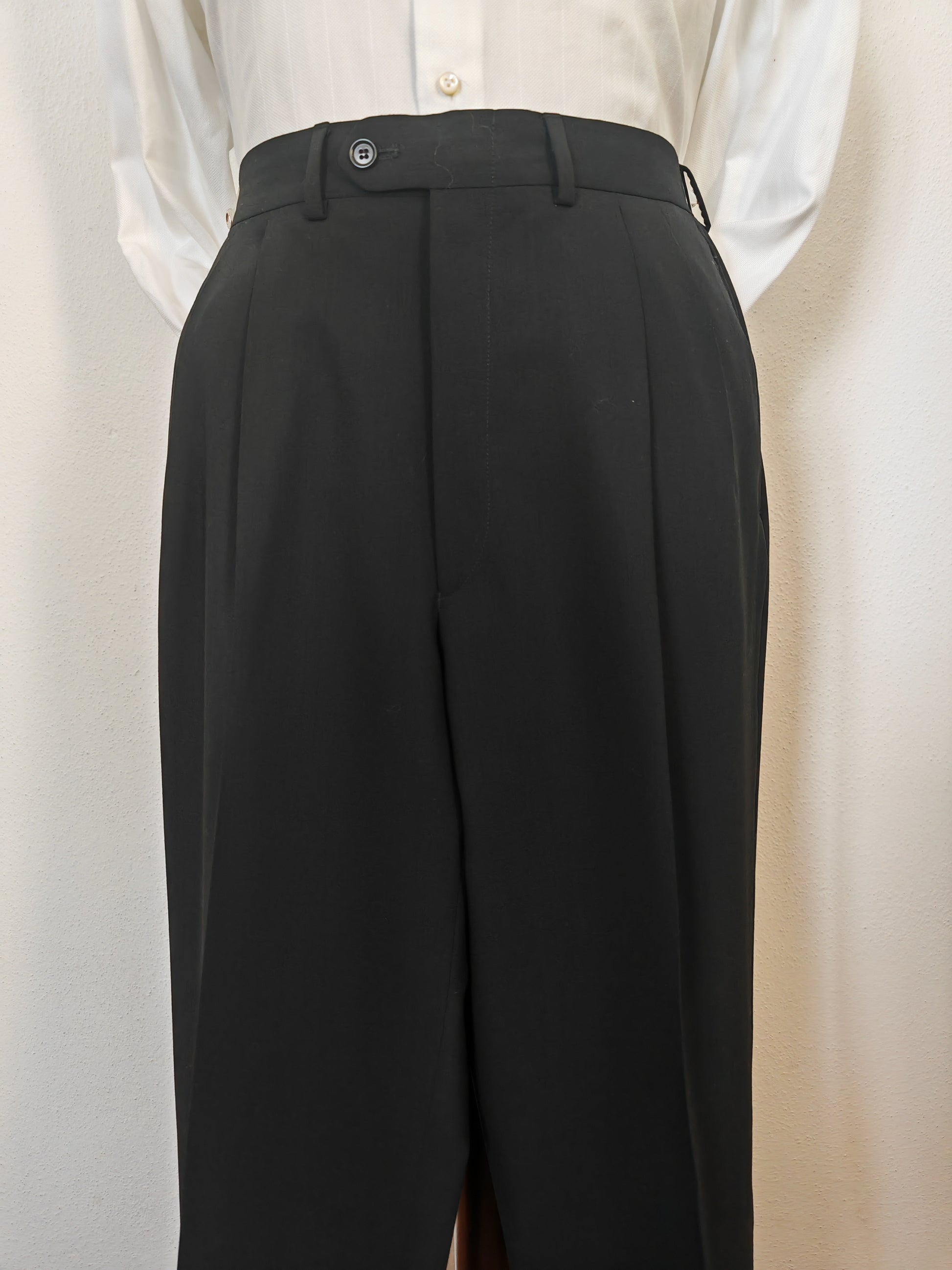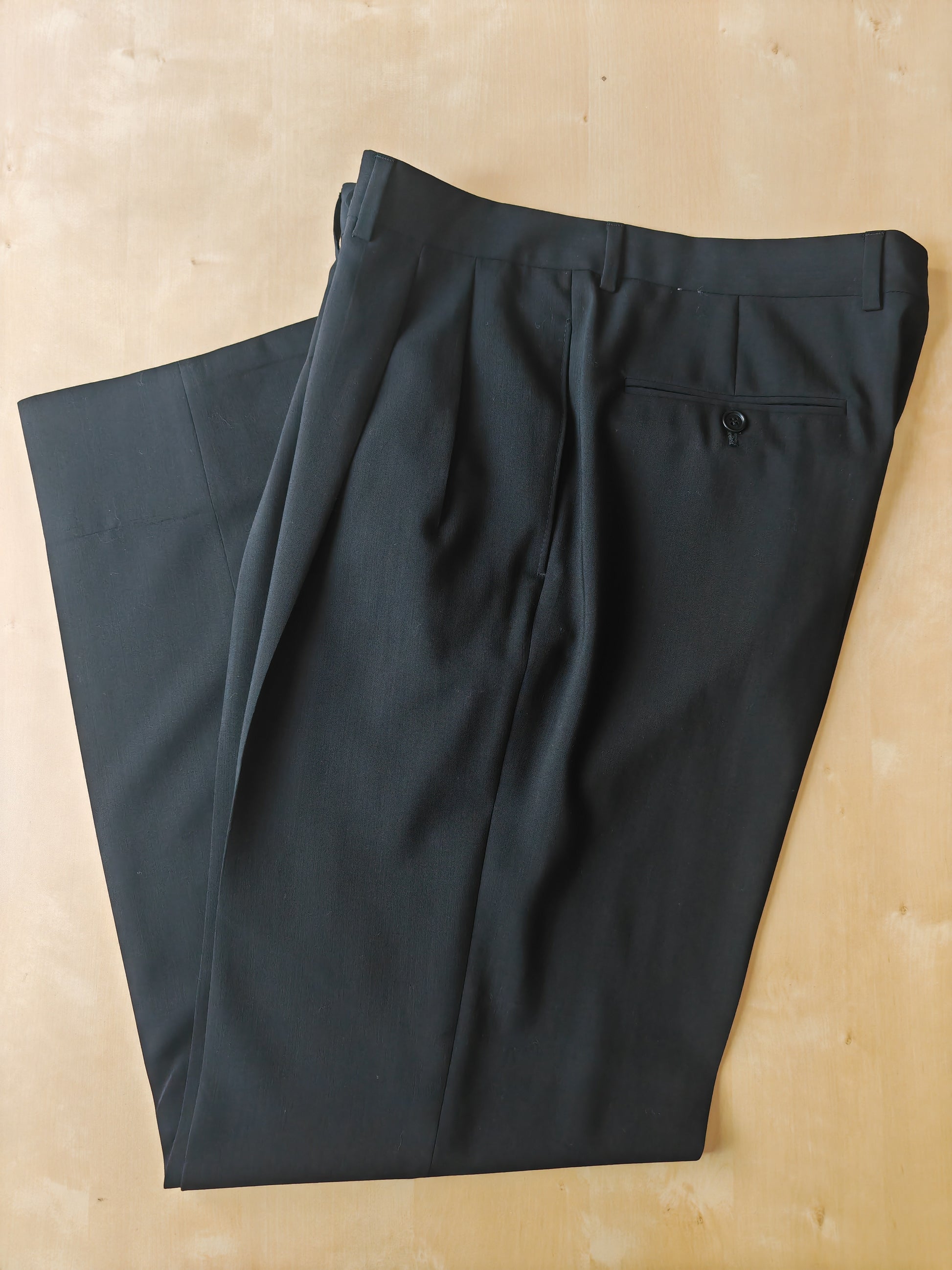 Il pantalone ha un normale taglio classico, senza i galloni laterali in raso, e con in più i passanti per la cintura. È quindi perfetto per essere usato anche spezzato, come un normale pantalone da giorno. Il taglio è comunque piuttosto formale, con tasche a filo, vita alta e doppie pinces.