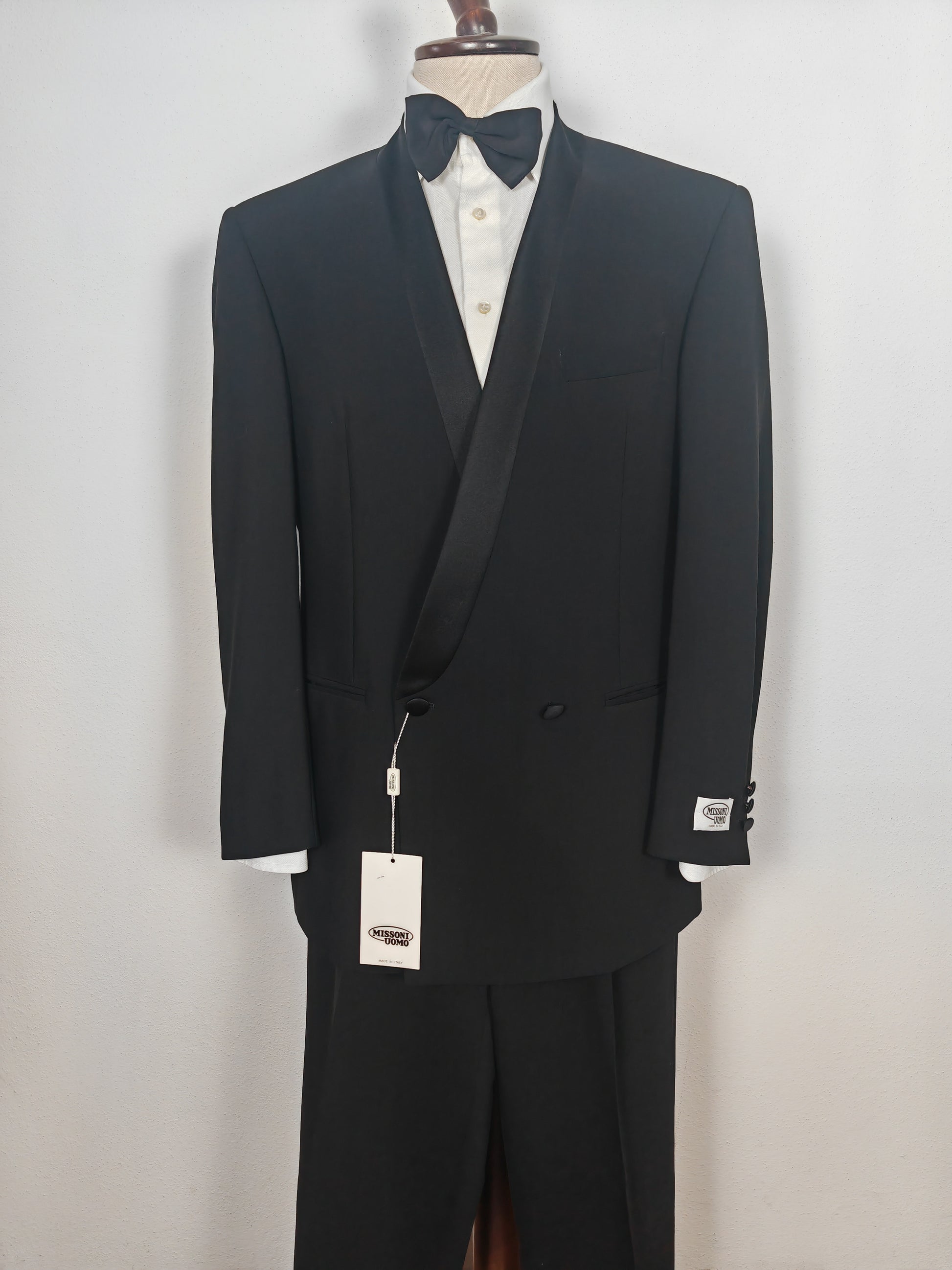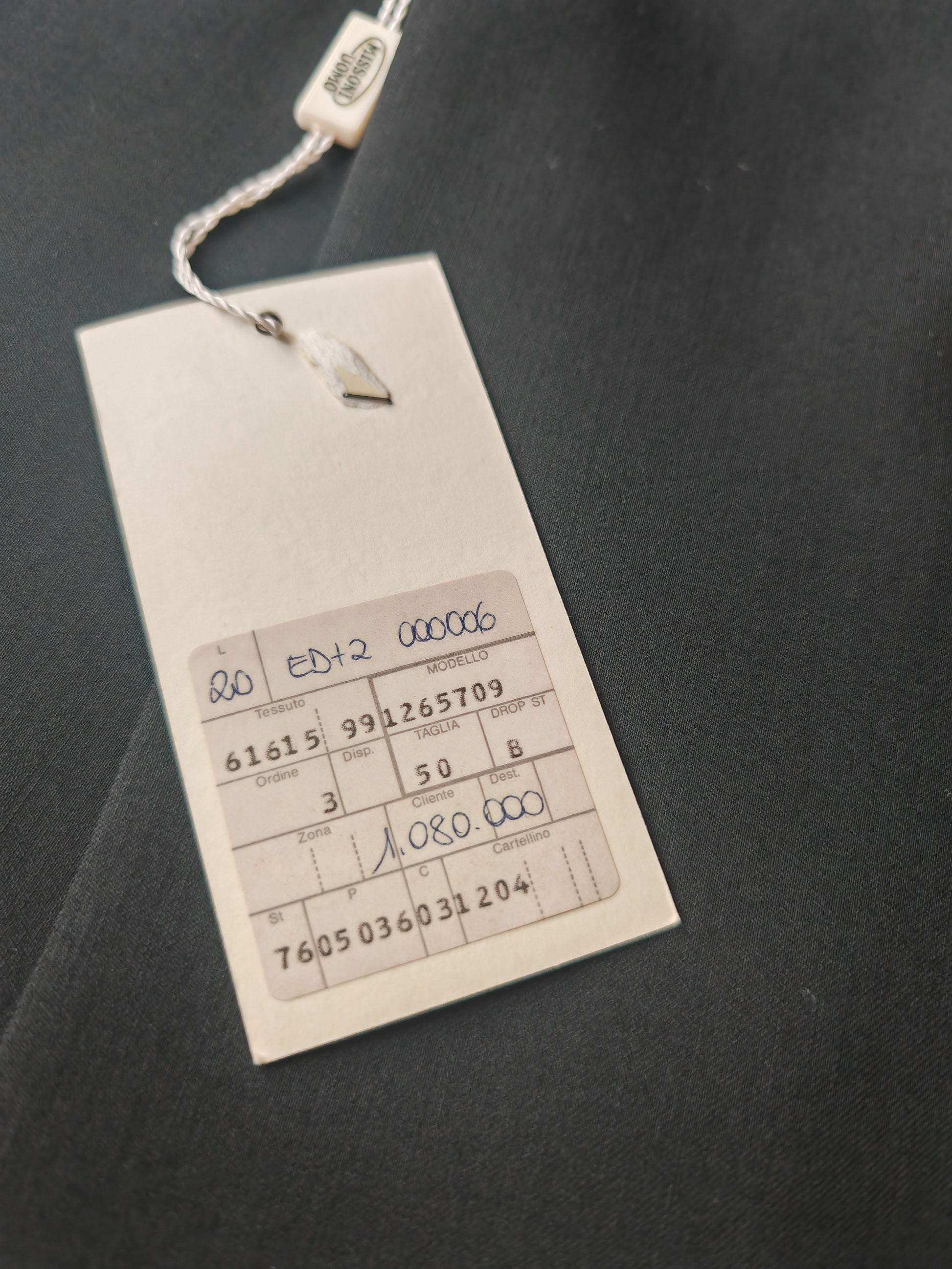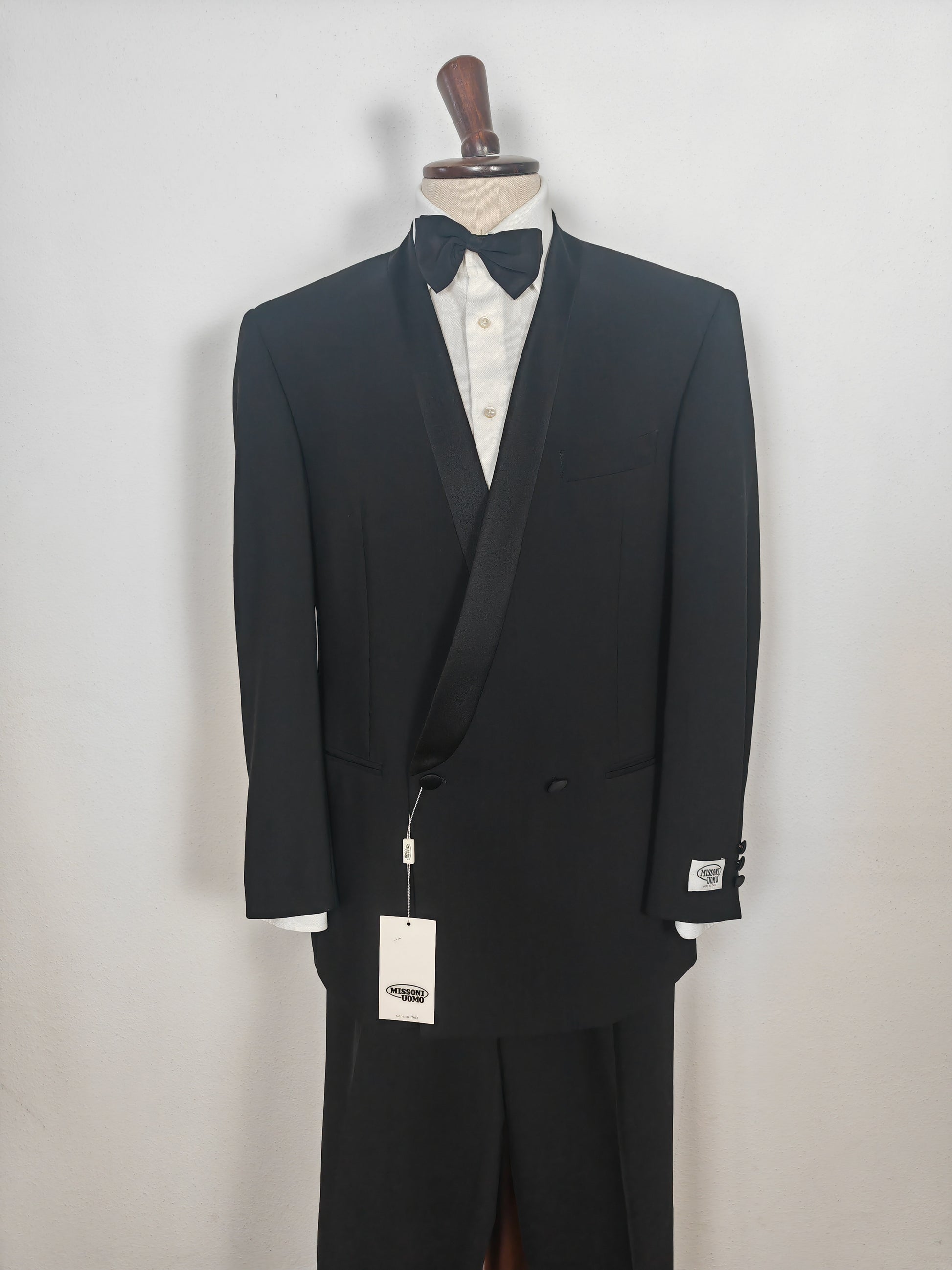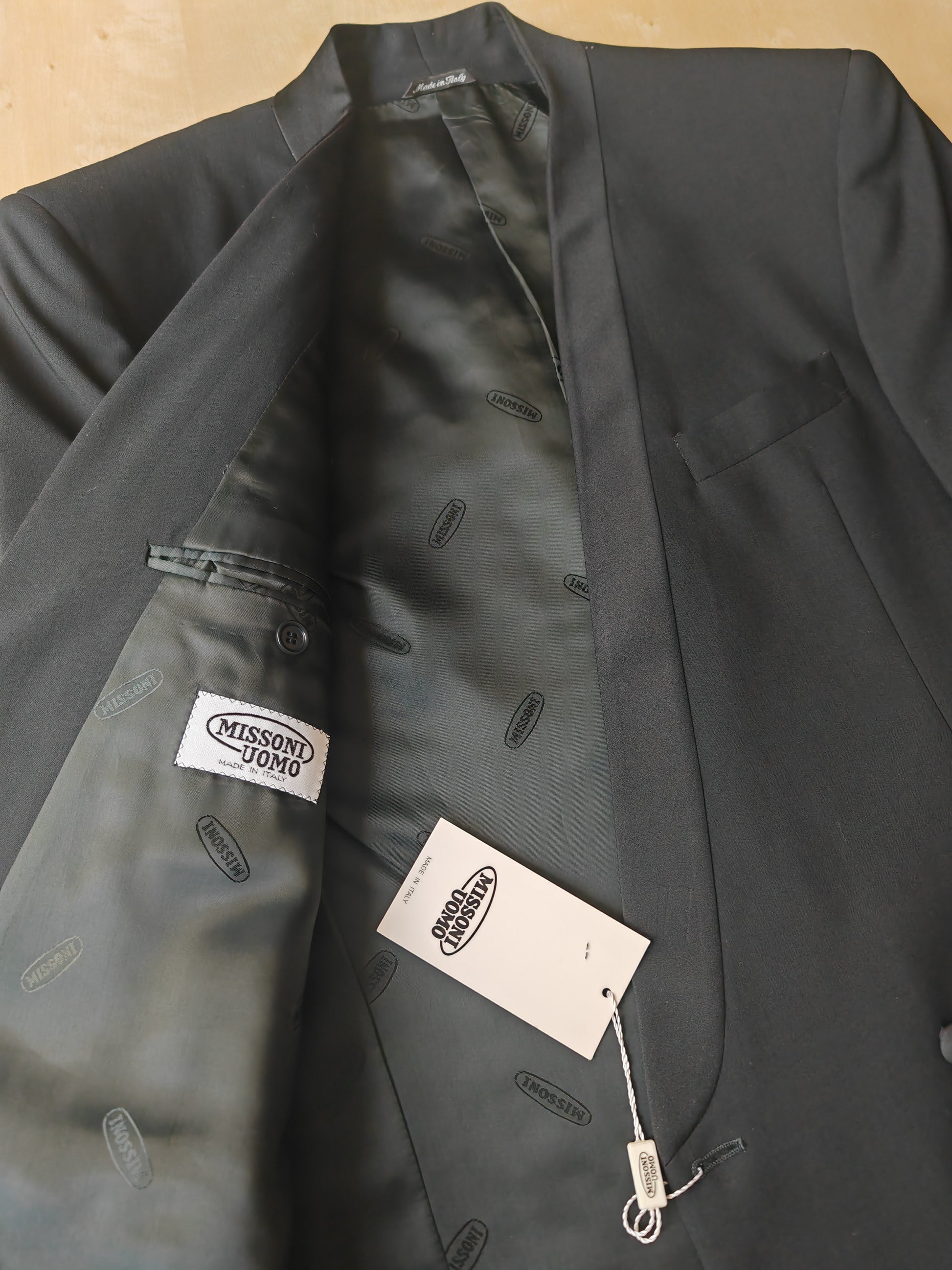 Splendido abito da sera "mezzo smoking" di Missoni, vintage anni '80 in condizioni di NOS: nuovo, mai utilizzato, con il suo cartellino e il suo vecchio prezzo in lire (1.080.000).