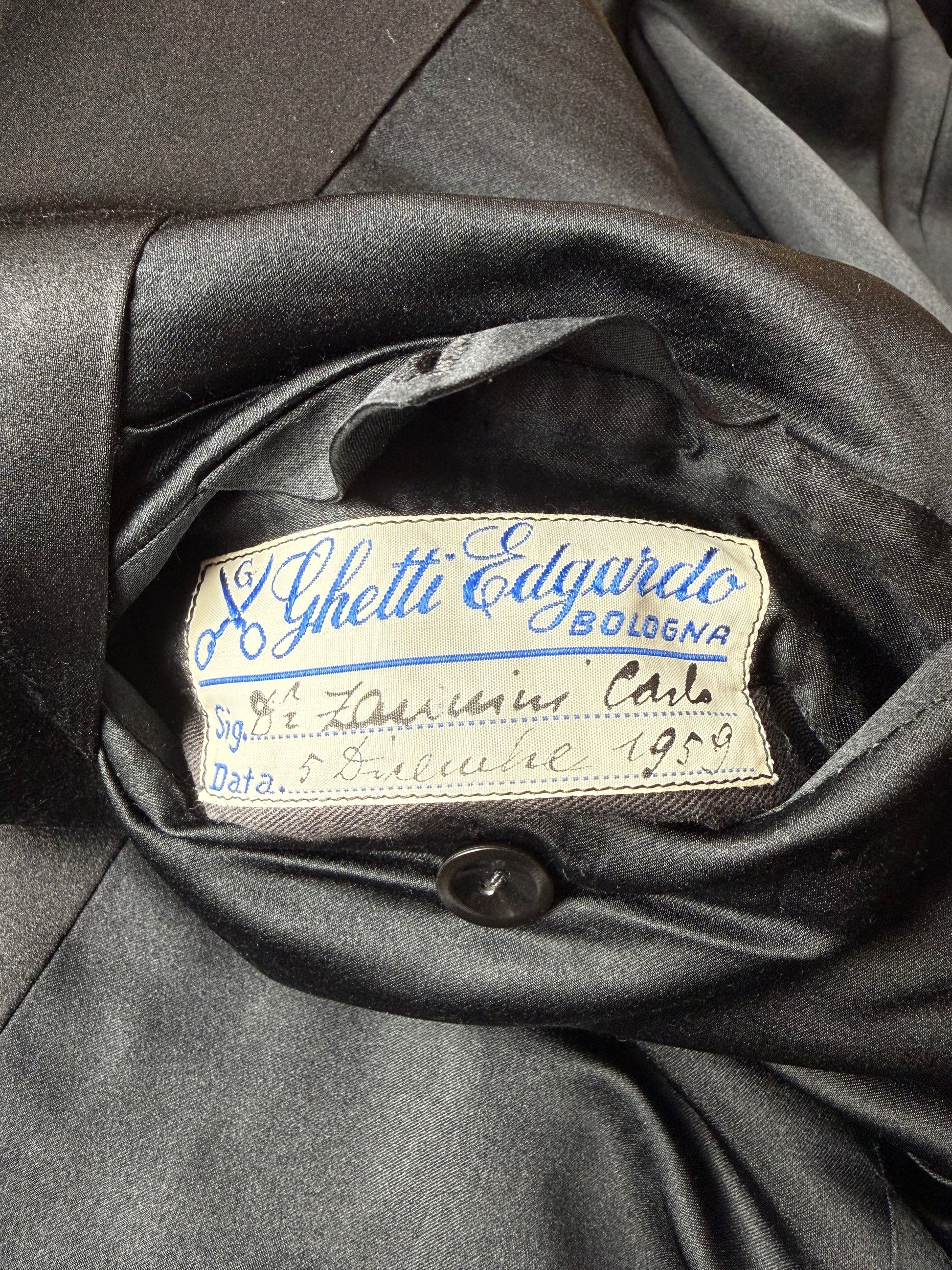Pregevolissimo smoking sartoriale datato 1959, sartoria Edgardo Ghetti di Bologna.