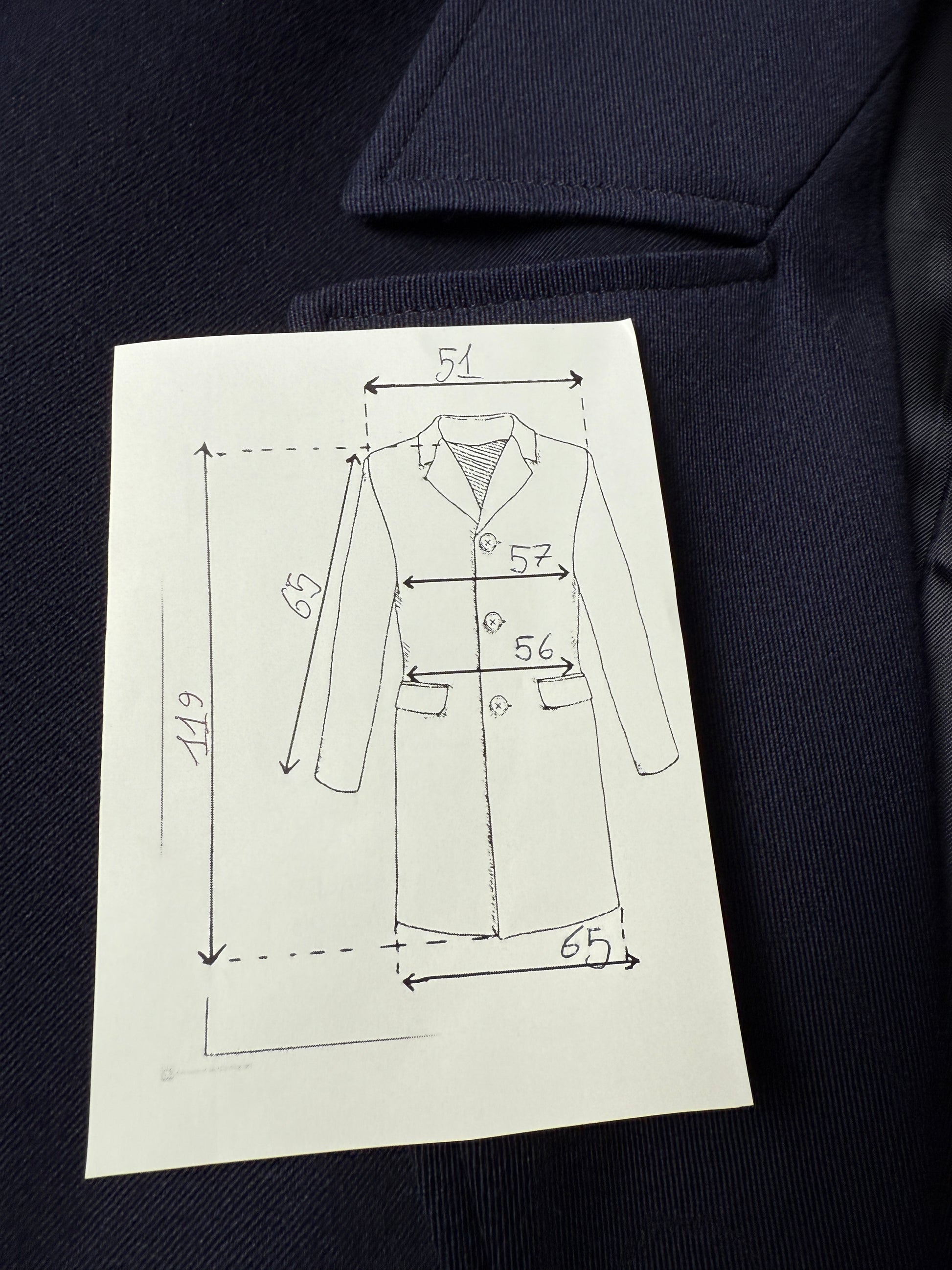Capo consigliato a una taglia 48 come soprabito, ma fino a una taglia 50 se si intende indossarlo sopra a strati più sottili. Vedere comunque le misure complete in cm nello schema in ultima foto.