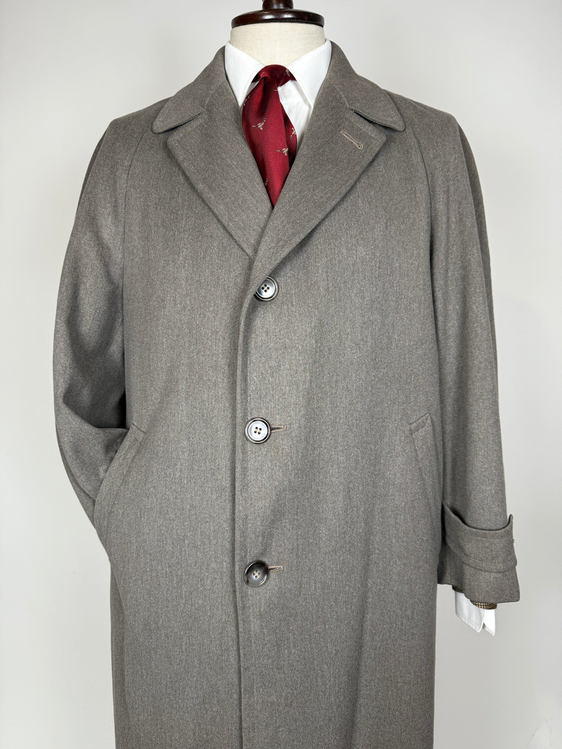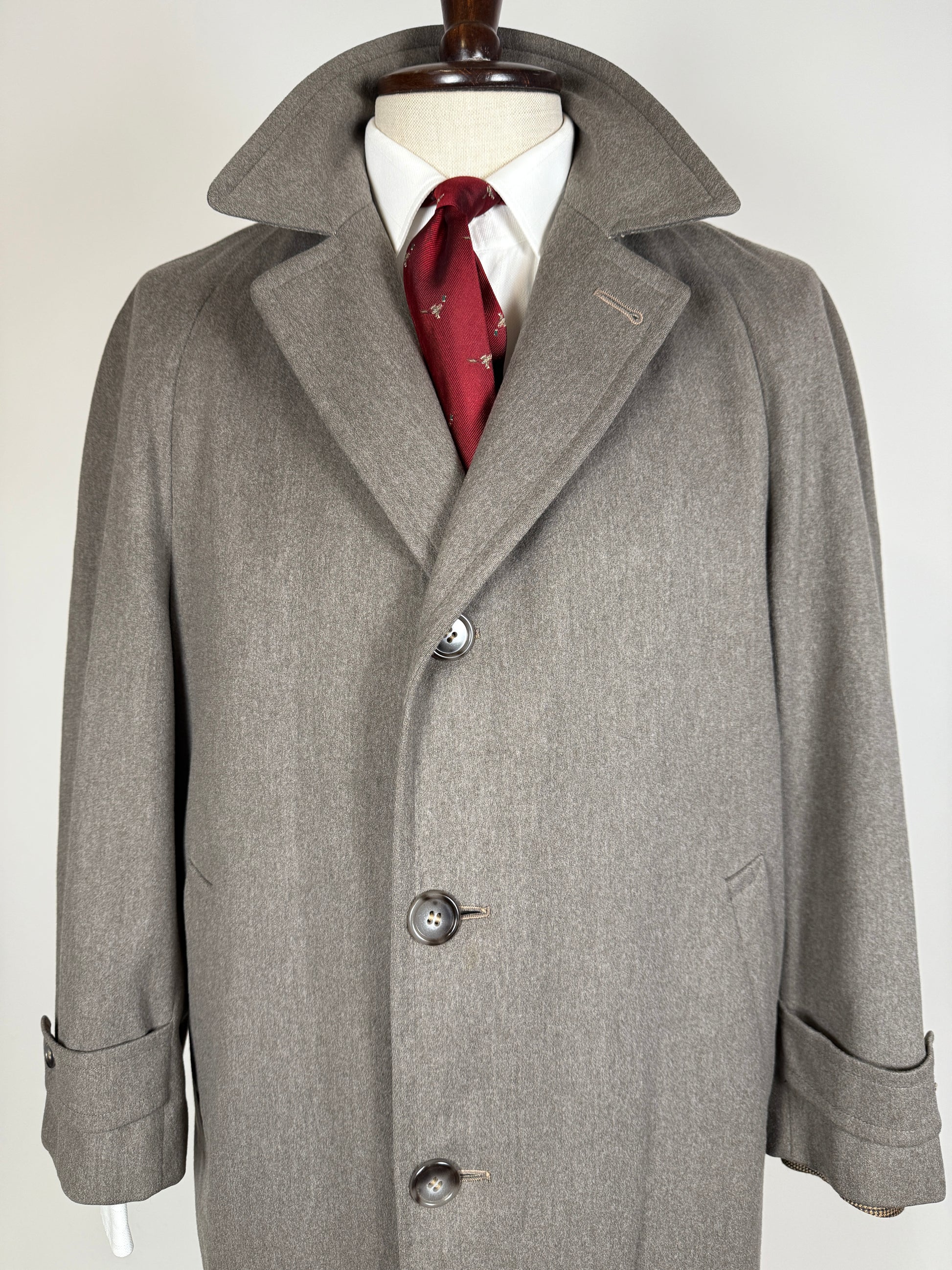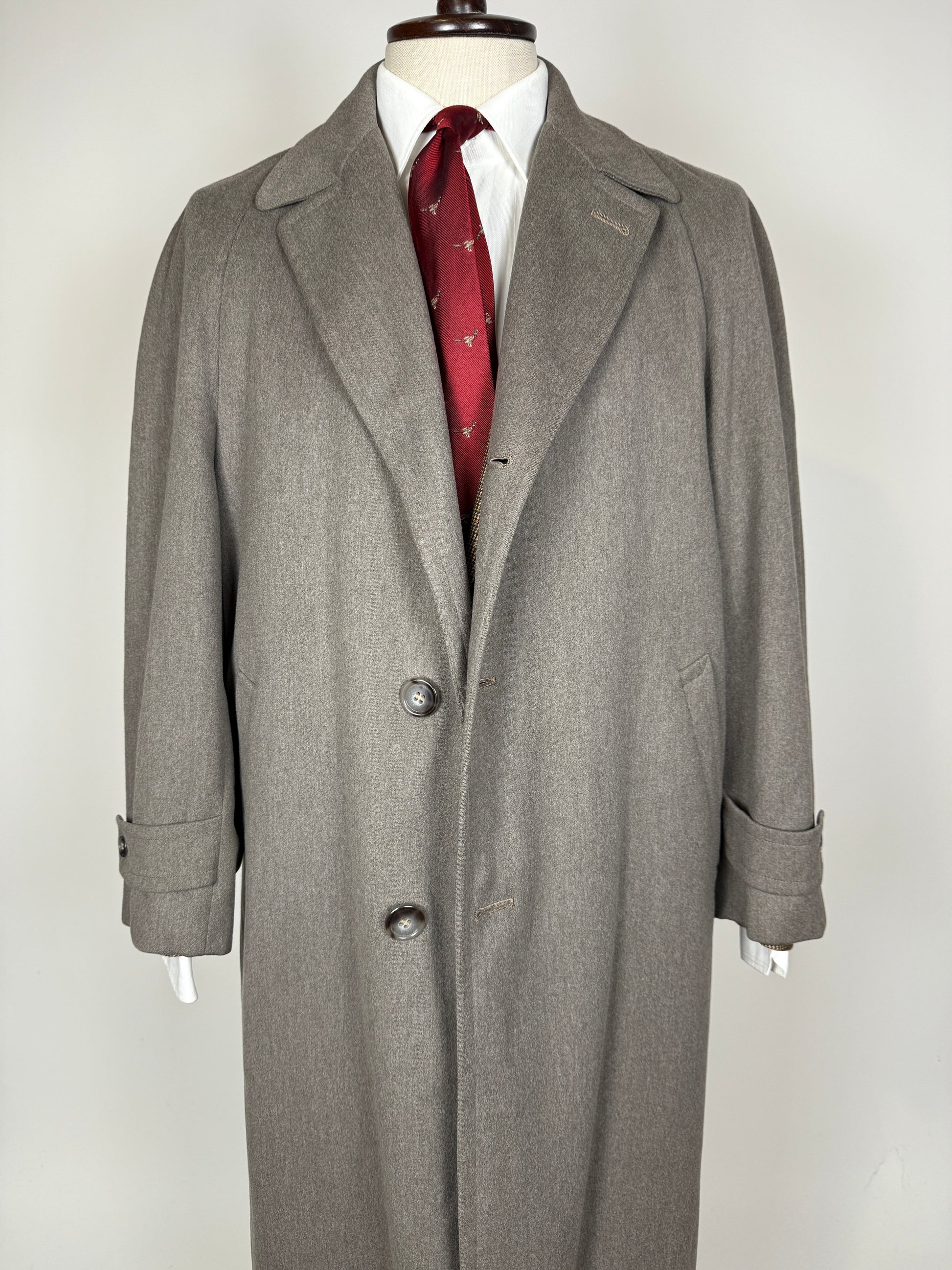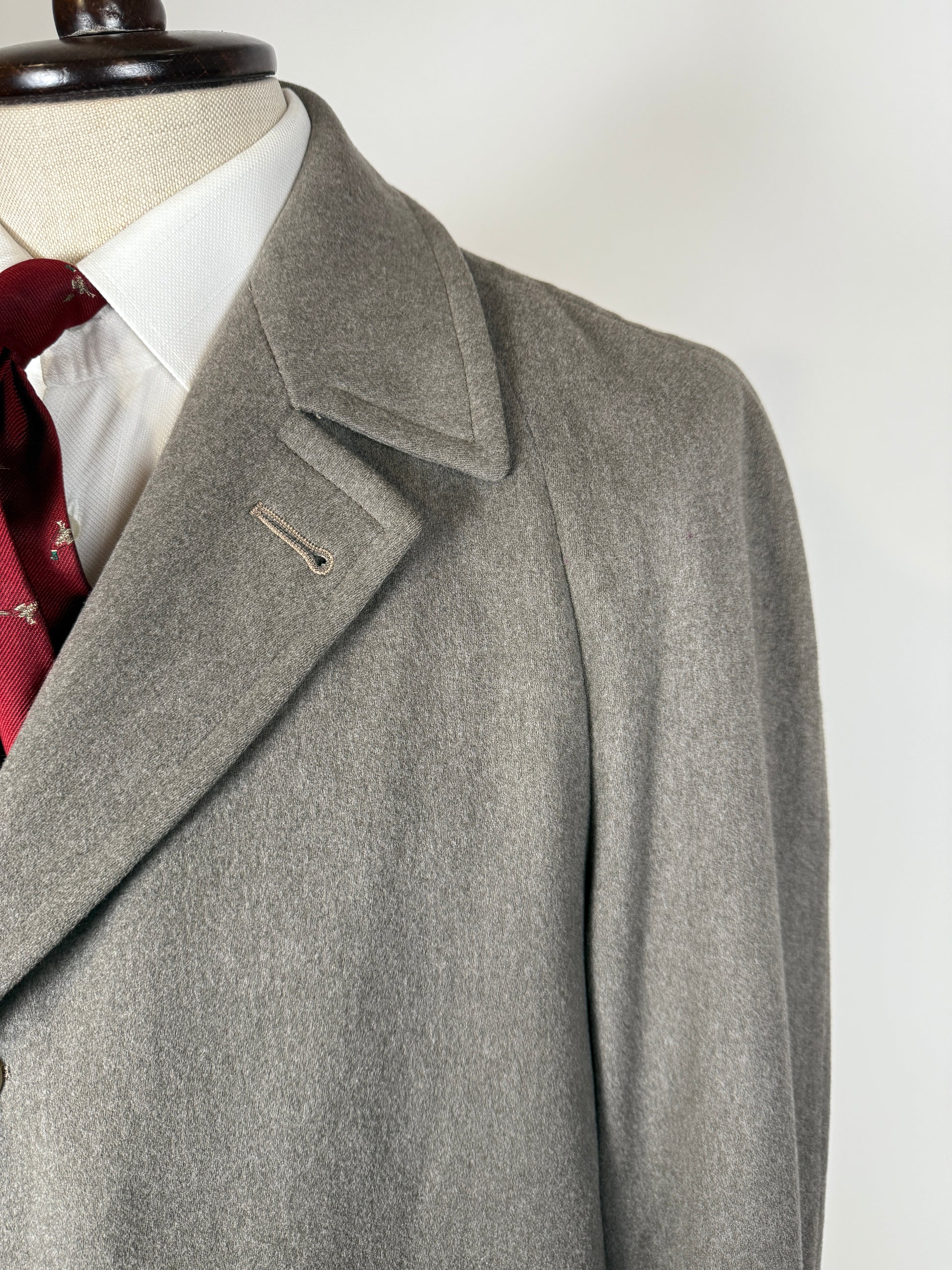 Bellissimo taglio raglan con baveri ampi in pieno stile d’epoca, monopetto 3 bottoni a vista abbottonabile fino al collo.