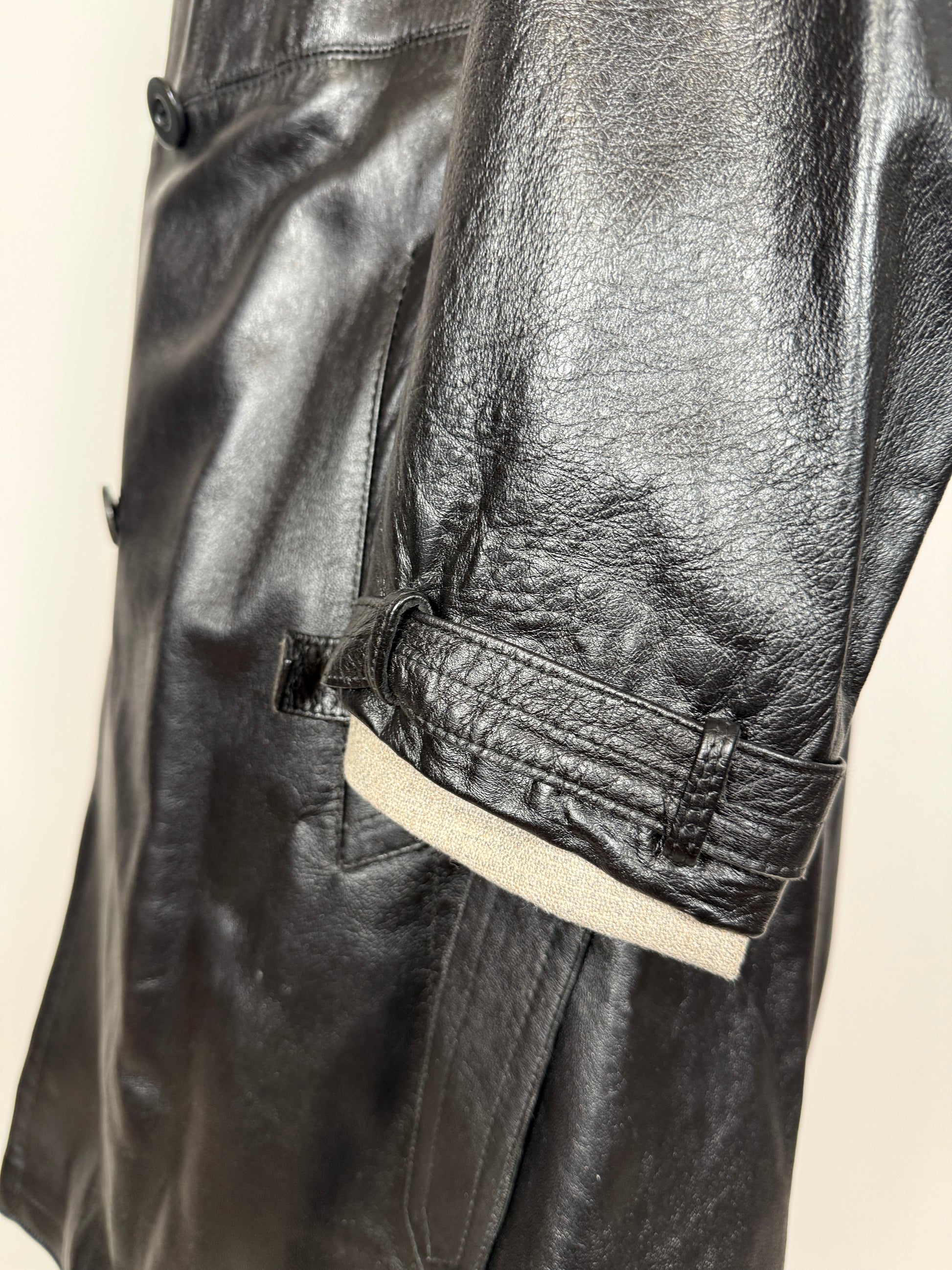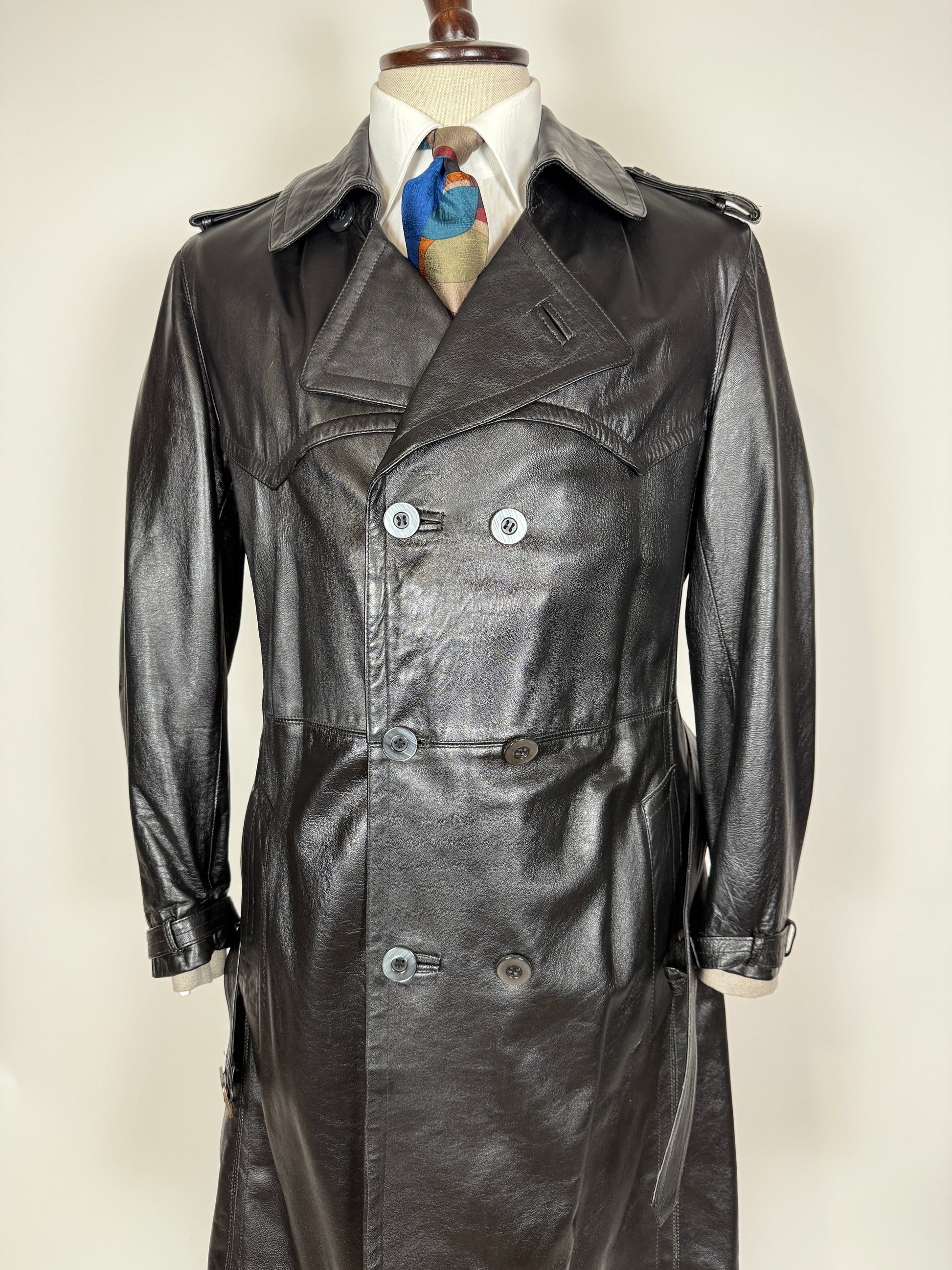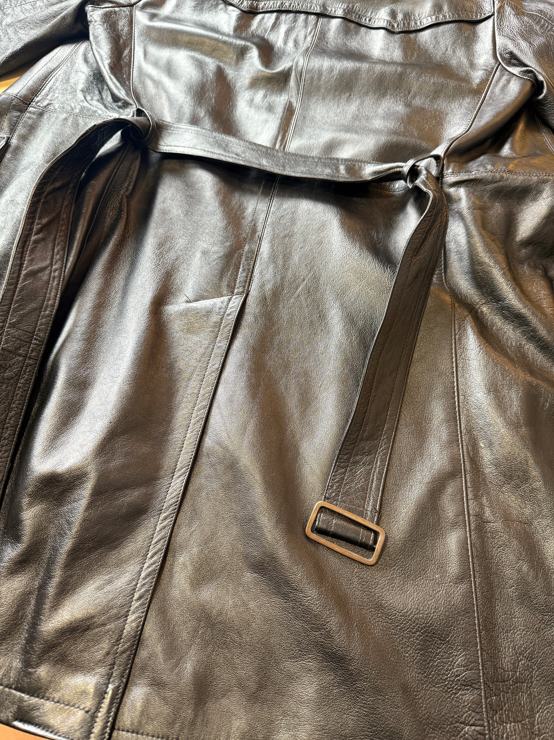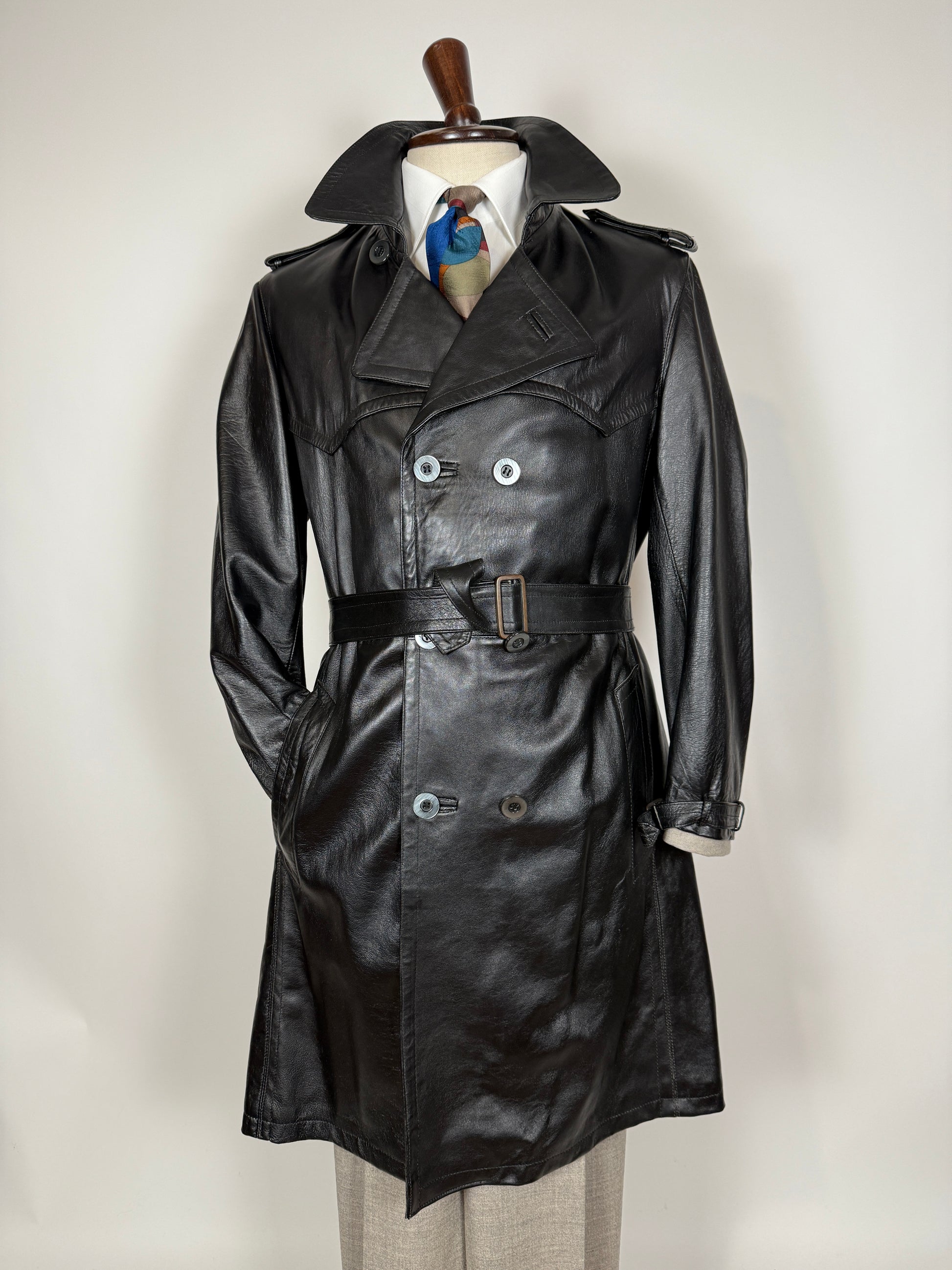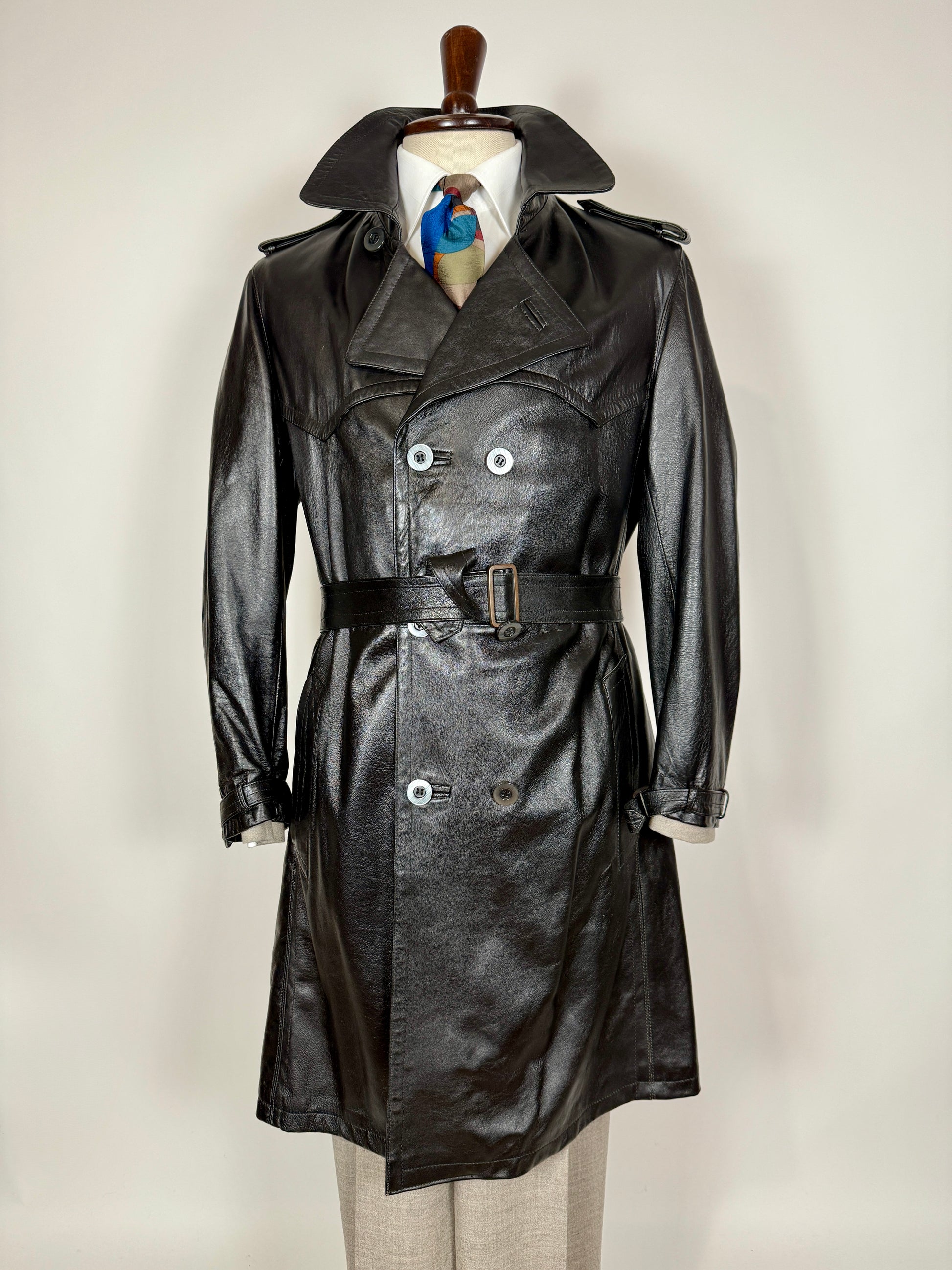 Taglio classico da trench doppiopetto, con cintura in vita e cinturini ai polsi. Fibbie in ottimo acciaio, molto pesanti.