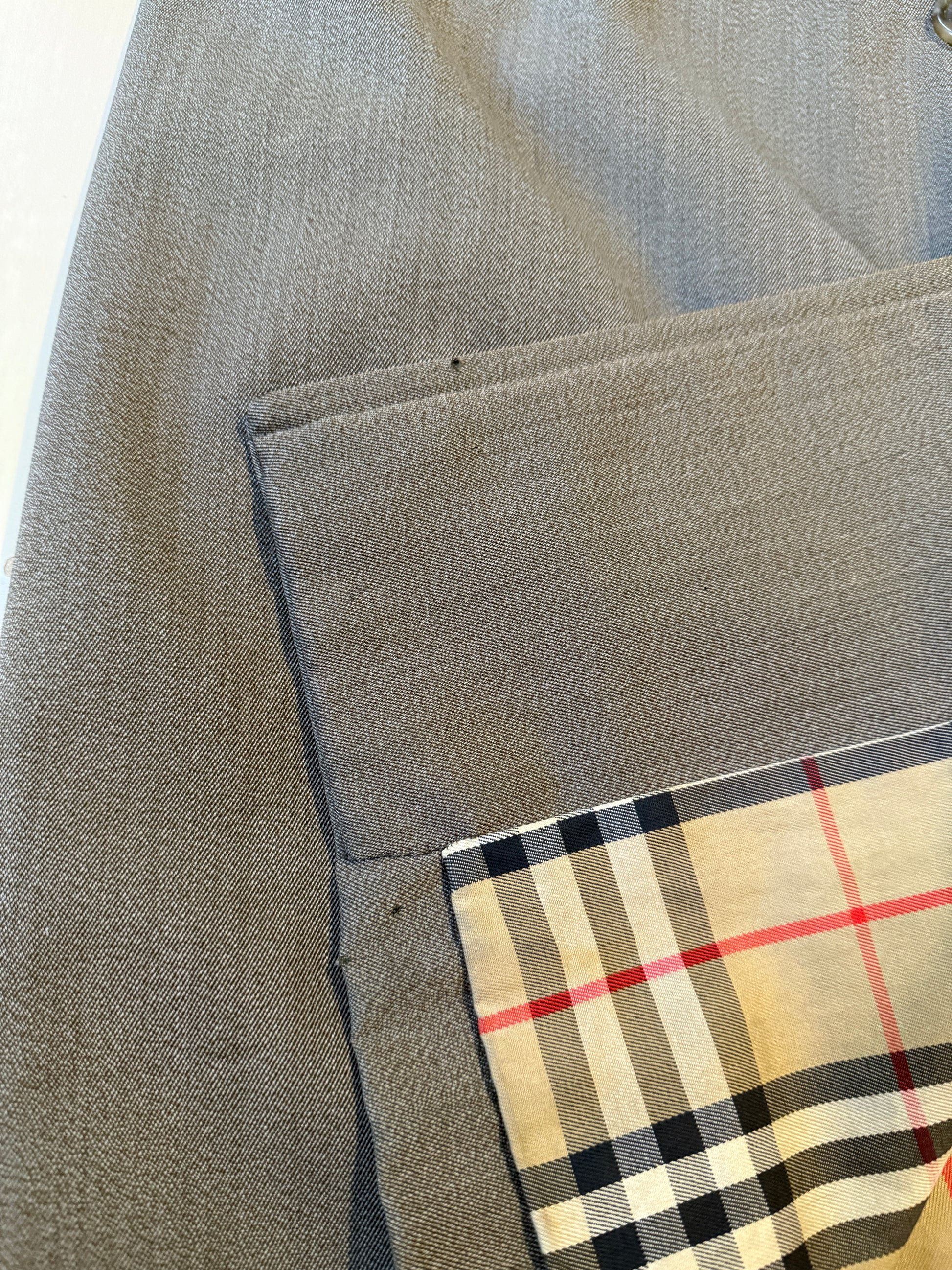 È da segnalare inoltre che le due fodere delle tasche interne, che sono in panno di lana, rappresentano una modifica successiva e sono state fatte a partire da un tessuto Burberry, verosimilmente di un liner interno per soprabiti.