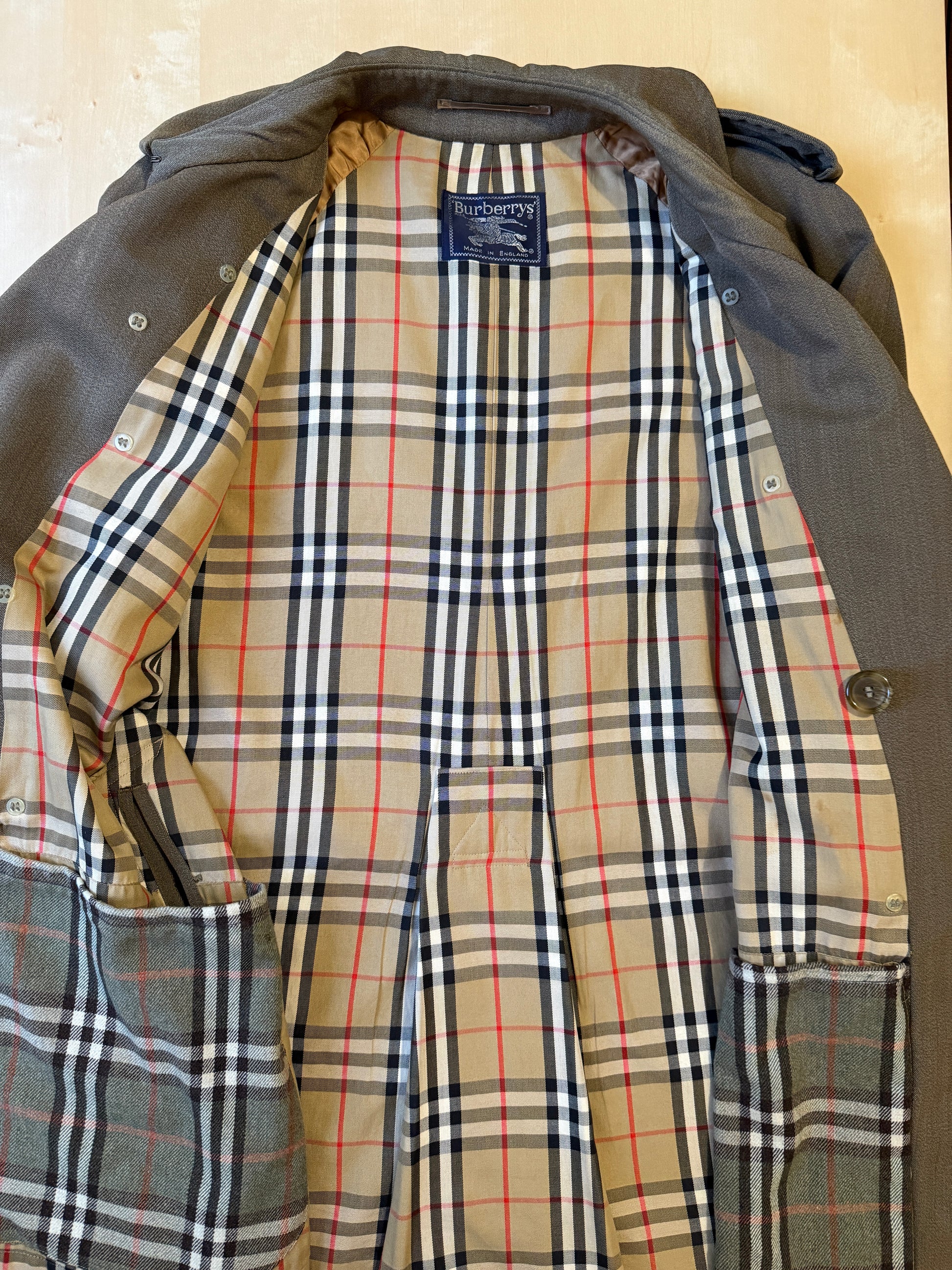 Trench doppiopetto anni ‘80 Burberrys, nella sua bellissima e meno comune versione in covert 100% lana (linea Specialities covert coating).